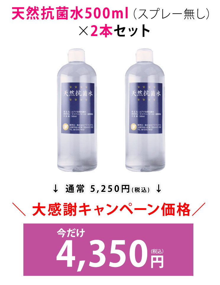 【2026/1/15(木)まで】ルアド 天然抗菌水500ml×2本セット